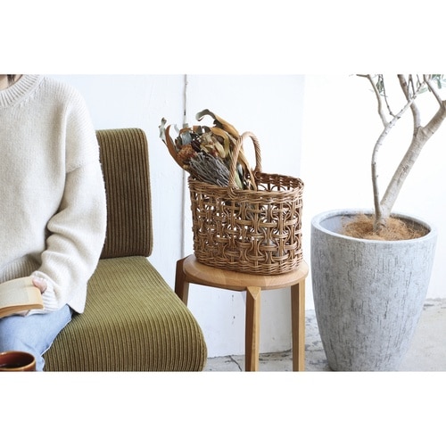 天然素材の皮付きラタンを贅沢に使用した、温かみのあるオーバル型のバスケットです。 ブランケットやスリッパなど、布小物の収納にもおすすめです。 |