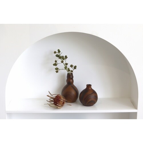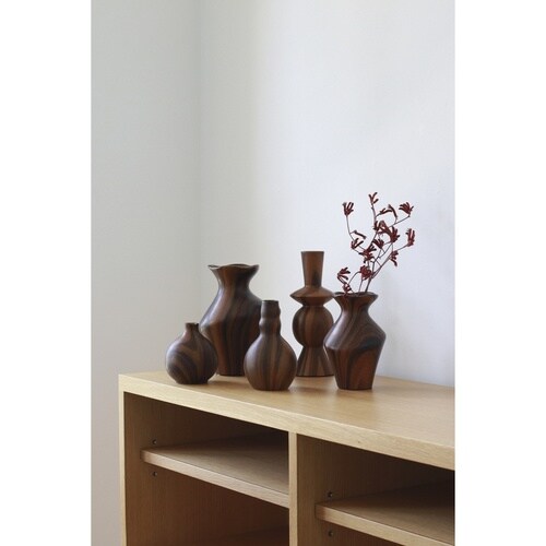 木のぬくもりをまとったフラワーベース ノアです。 濃淡のあるリアルな木目を転写で表現しています。 陶器製なので水に強くてお取り扱いしやすいです。 まるで実験のフラスコのような形が印象的です。 |