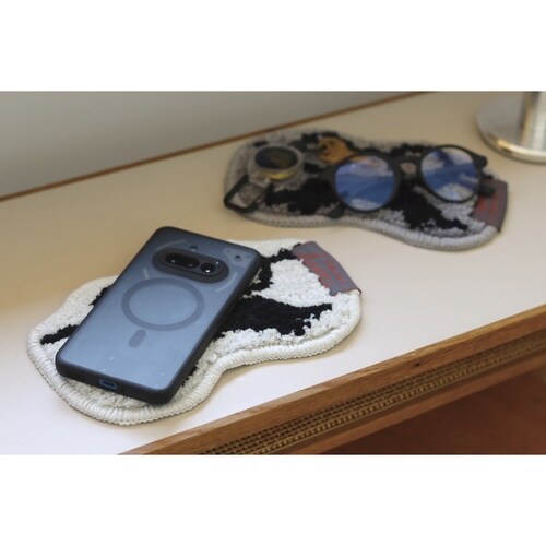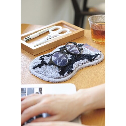 タフト製法で丁寧に仕上げた、ふんわりとした質感の眼鏡置きマットです。 眼鏡と髭のイラストが描かれた、遊び心のあるポップなデザインです。 |