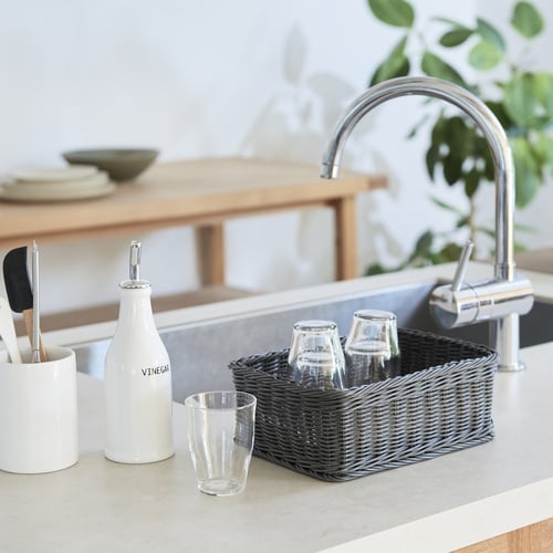 かご KLEANE PLUS 洗える 抗菌素材 スクエア アメニティーバスケット S ダークグレー