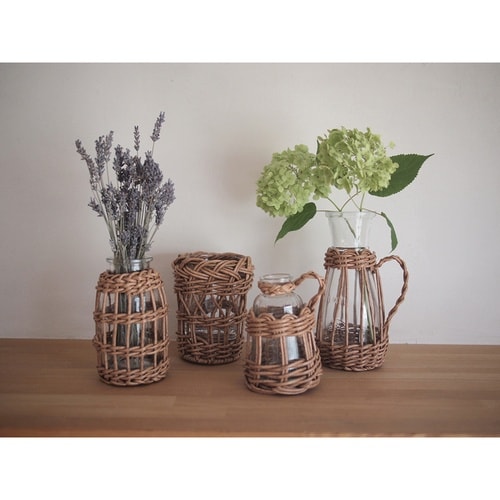 本物の柳に近い風合いのフェイク素材を使用したフラワーベースです。 丸みのある形がかわいい ミルク瓶型です。 ポリエチレン素材を使用しているので水で丸洗できます。 |