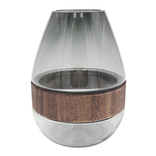 アンティークカラーの木とスモーク色のガラスの異素材がオシャレなガラスベースです。 フォグウッドシリーズ ドロップ【Lサイズ】です。 一輪挿しでもボリューム感のあるブーケにもおすすめです。 |