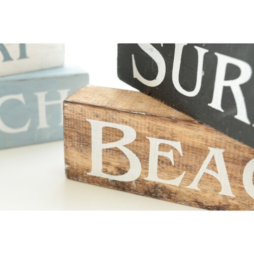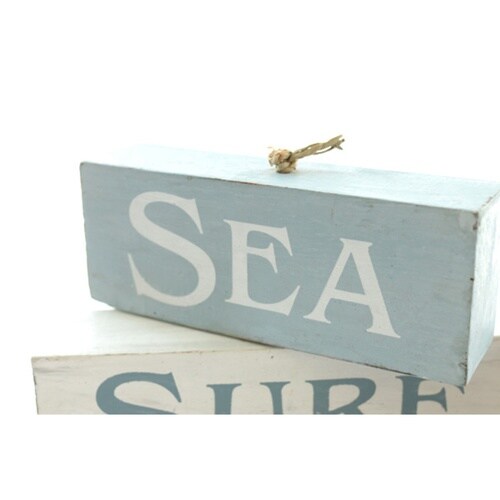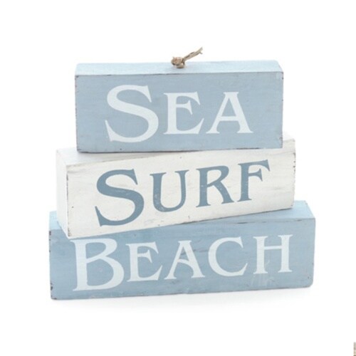2色のウッドブロックにSEA、SURF、BEACHをデザインされています。 3つのブロックの向きを少しずつ変えてオシャレにできます。 ブロックは紐で繋げてあります。 |