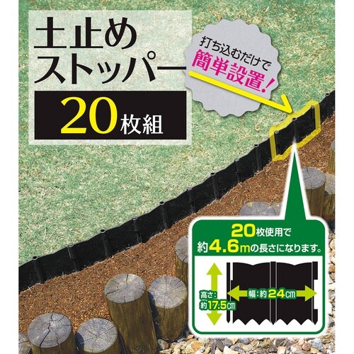土の流出を防ぎ、花壇や菜園の土留めにも使える便利なストッパーです。 柔軟な樹脂素材で、直線もカーブも思いのまま。お庭のレイアウトに合わせて簡単に設置できます。 |