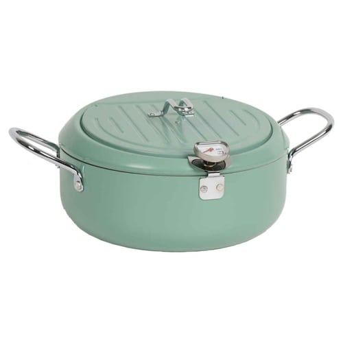 天ぷら鍋 24cm IH対応 鉄製 バット蓋付き 温度計付き グリーン