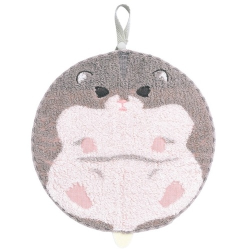可愛いハムスター柄の丸い形のタオルハンカチです。ご来場記念のお礼の品やノベルティなどのお配りものとしても是非。タオル地なのでしっかり吸水。 |