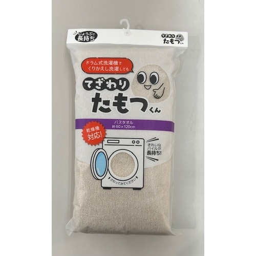 老舗タオルメーカー考案の「てざわりたもつくん」です。ドラム式洗濯機で繰り返し洗濯しても固くなりづらく、優しいてざわりをたもちます。ヘム部分はほつれにくいように二重でミシン縫いをしています。 |