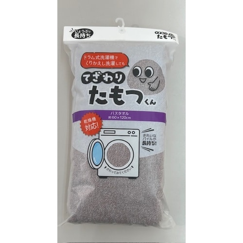 老舗タオルメーカー考案の「てざわりたもつくん」です。ドラム式洗濯機で繰り返し洗濯しても固くなりづらく、優しいてざわりをたもちます。ヘム部分はほつれにくいように二重でミシン縫いをしています。 |