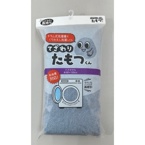 老舗タオルメーカー考案の「てざわりたもつくん」です。ドラム式洗濯機で繰り返し洗濯しても固くなりづらく、優しいてざわりをたもちます。ヘム部分はほつれにくいように二重でミシン縫いをしています。 |