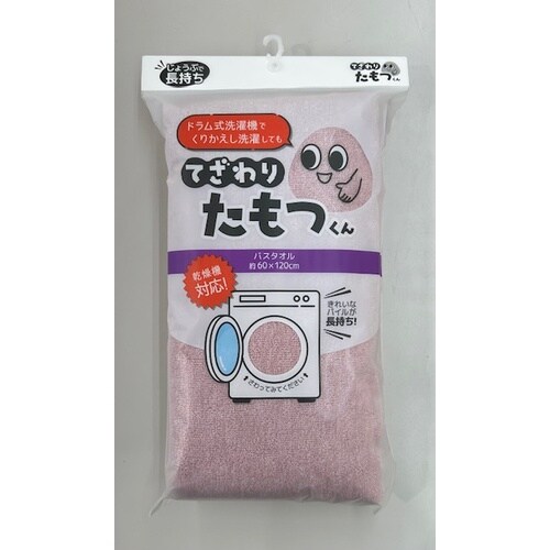 老舗タオルメーカー考案の「てざわりたもつくん」です。ドラム式洗濯機で繰り返し洗濯しても固くなりづらく、優しいてざわりをたもちます。ヘム部分はほつれにくいように二重でミシン縫いをしています。 |