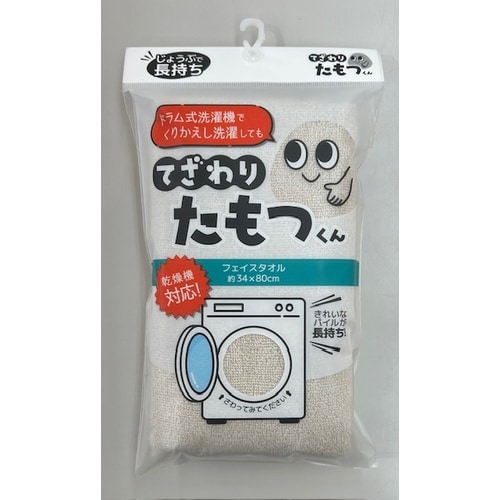 老舗タオルメーカー考案の「てざわりたもつくん」です。ドラム式洗濯機で繰り返し洗濯しても固くなりづらく、優しいてざわりをたもちます。ヘム部分はほつれにくいように二重でミシン縫いをしています。 |