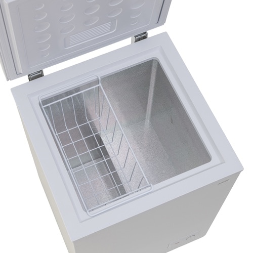 上開き式で冷気が逃げにくい構造になっております。ワイヤーバスケット付きで小物も埋もれず取り出せます。調整ダイヤル付きでお手入れも簡単。下部には排水キャップが付いています。 |