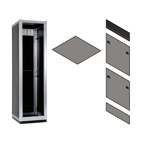 キャビネットラックRKCシリーズの本体枠専用の外装板のセット品です。天板は放熱穴が開いていない仕様になっていますラック後面上部のベンチレーションパネルから自然放熱される構造です。 |