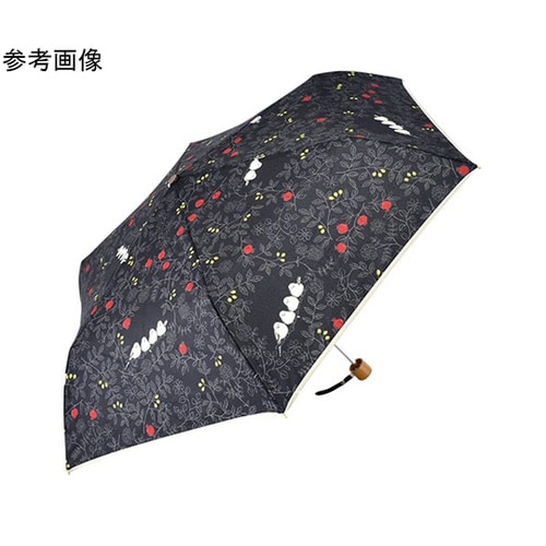 MKN 55cm耐風楽ミニ傘 ザクロとシマエナガ ブラック S2112402