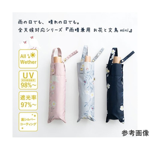 MKN シルバーコーティング雨晴兼用 55cm耐風楽ミニ傘 お花と文鳥 ピンク S2712106