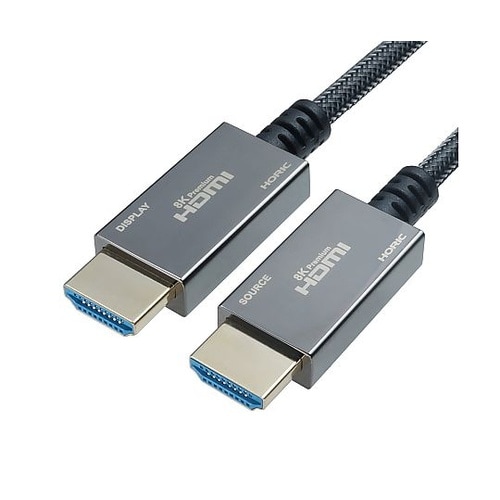 メインの信号線にガラス製光ファイバーを使用したハイブリッドHDMIケーブルです。銅線のみのHDMIケーブルに比べて、伝送損失が少なくノイズの影響を受けにくいため、安定した長距離伝送が可能です。 |