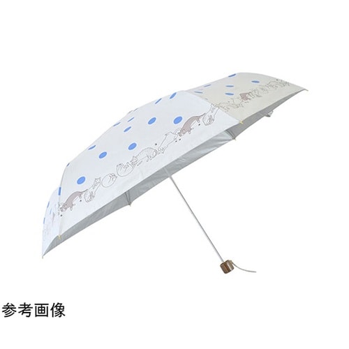 MKN シルバーコーティング雨晴兼用 55cm耐風楽ミニ傘 猫と水玉 オフホワイト S2712001