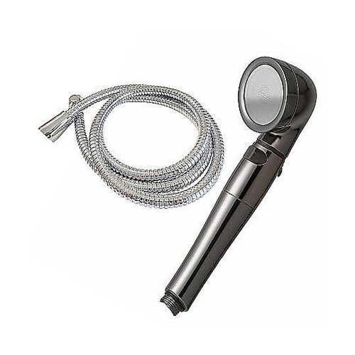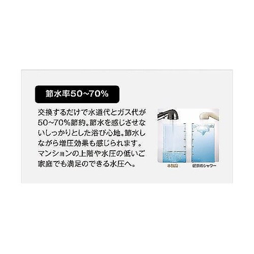 シルクのような優しい肌あたりの節水シャワーヘッド、ホース付きです。シャワーの勢いはそのまま、最大70%の節水効果を発揮します。ヘッド背面のスイッチでソフト水流とハード水流を切り替え可能です。 |
