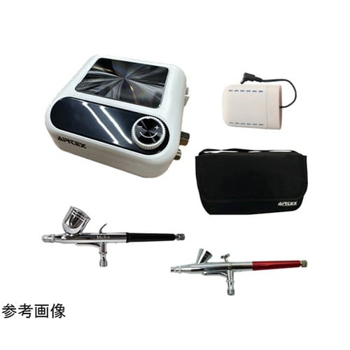 AIRTEX コンプレッサー+エアブラシ×2 スピカ2+エアレバ仕様0.3mm/ダブルアクション0.2mm口径 APC032−S2