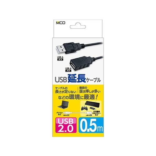 USB2.0延長ケーブル 0.5m ブラック USB−EA005BK