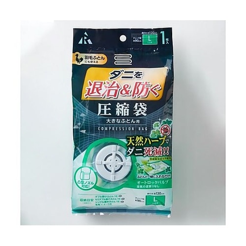 オートロックバルブタイプ合成殺虫成分は使用していません。ハーブの働きでダニを駆除します。気になるダニを駆除し布団を快適に保管できます。圧縮操作は簡単。掃除機を当てて吸引するだけ。 |
