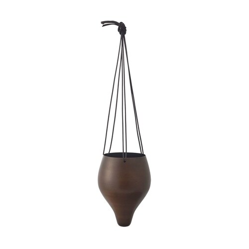 下から見たとき美しく見えるようにデザインされたハンギングポット。インテリアグリーの演出に適しています。綿素材の編み紐付きです。 |