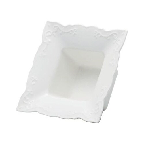 器を斜めに倒して飾ることが出来るギフトアレンジ向けのアイテム。レースのような優しいフォルムが特徴です。ニューボーンチャイナ独特の温かみのある白さが上質感を演出します。 |