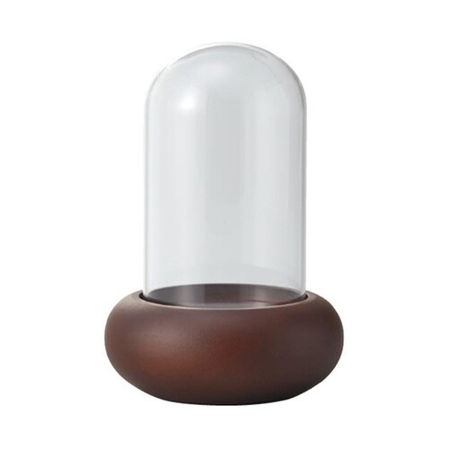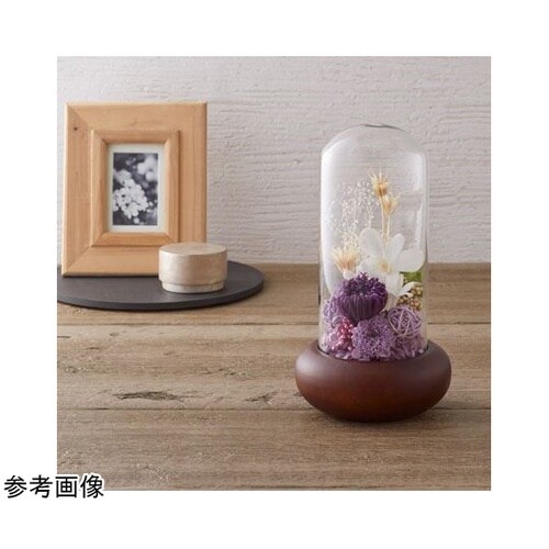 高級感のあるガラスドームと木の台座のセット。個装箱は緩衝材が付いていて、アレンジメントが完成してからもギフト用の箱として二次利用出来るように設計されています。 |