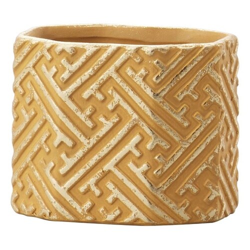 家の繁栄や長寿を表す「紗綾形」紋様を総柄であしらった器。表面に金箔をあしらい雅感を演出しています。 |