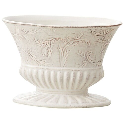 クラシカルな足つきの形状で、花を入れた時に足元がバランスよく見えるように設計された器です。うっすらと入った模様が女性らしさを演出します。 |