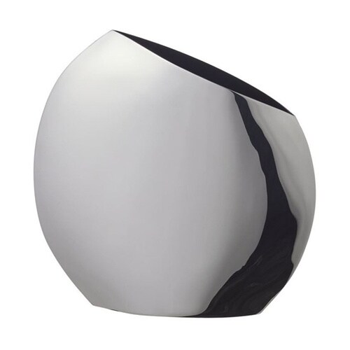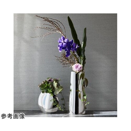 ステンレスの鏡面が特徴の花瓶。下部に重りをつけ安定感が出るように設計されています。 |