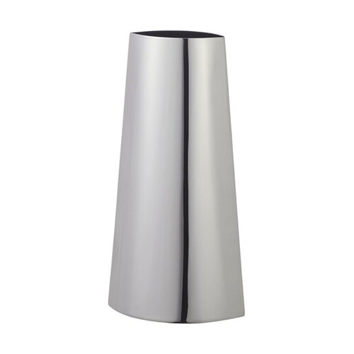 ステンレスの鏡面が特徴の花瓶。下部に重りをつけ安定感が出るように設計されています。 |