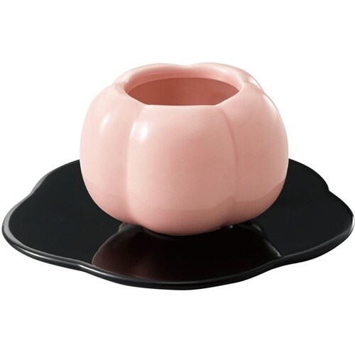 和菓子をモチーフにした器。受皿の形も特徴的で、和の凛とした空気感をデザインしました。 |
