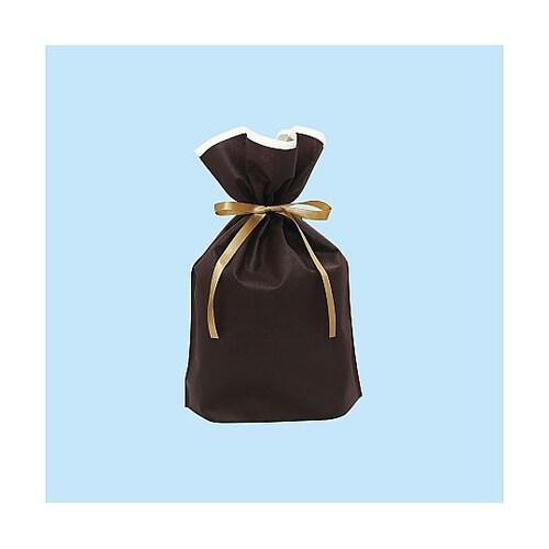 フロンティア 不織布リボン付きギフトバッグ ブラウン 巾着 底マチ付き 幅17×高さ28[18]×底マチ8cm 10枚入 61−785−29−1