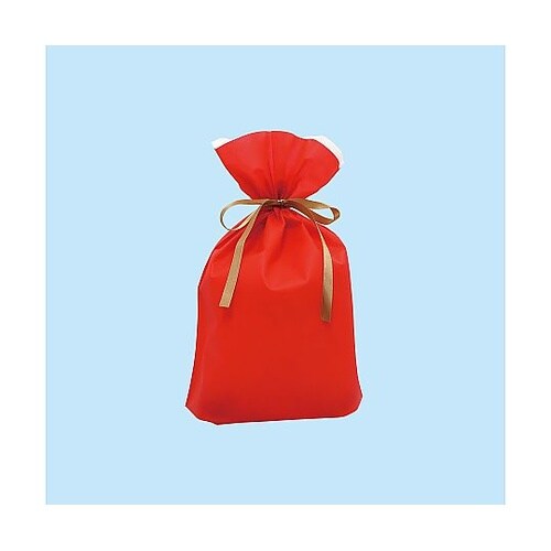 フロンティア 不織布リボン付きギフトバッグ レッド 巾着 底マチ付き 幅17×高さ28[18]×底マチ8cm 10枚入 61−785−28−1