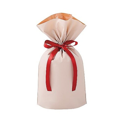 梨地リボン付きギフトバッグ ベージュ 幅17×高さ28[18]×底マチ8cm 20枚入 61−811−7−1