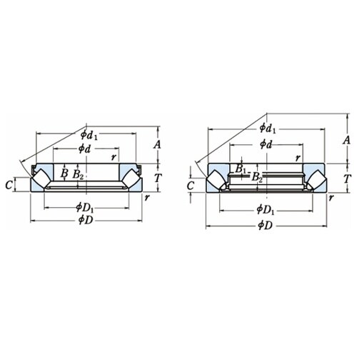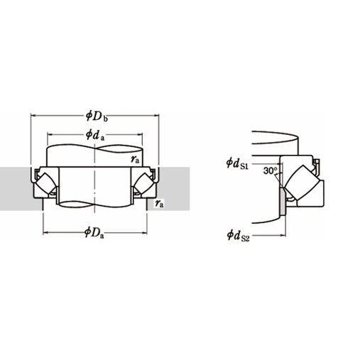 転動面が たる形ころを斜めに配列したスラスト軸受です。ハウジング軌道盤の軌道が球面をなしているので、軸受は調心性をもっています。 |
