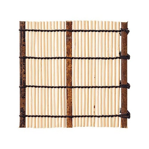 竹の内側にある身を使用したスダレコースターです。生成りで桟が緑の物、トラのものと炭化したススの 3種類をラインアップしています。 |
