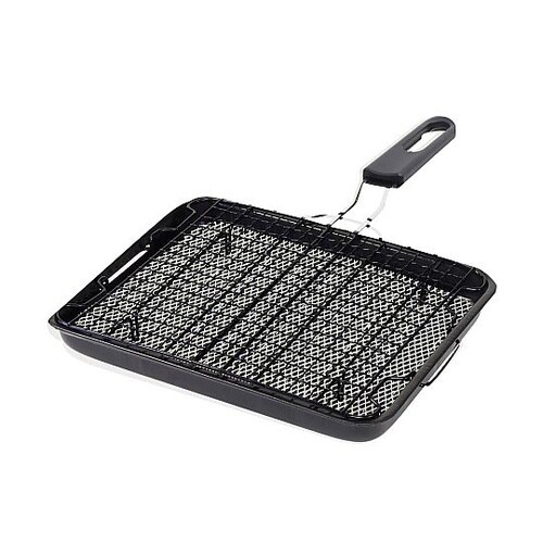 セラミック遠赤外線効果でこんがり焼ける。肉や野菜などの具材が落ちにくいクロス網です。 |