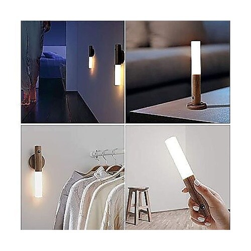 センサーライト USB充電 人感センサー 明暗センサー 木目調 スティックライト 30955
