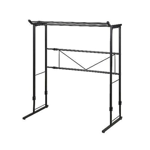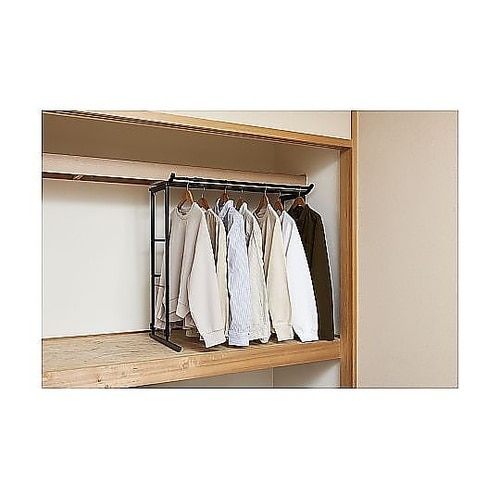段違いの2連パイプでたっぷり掛けられるハンガーラックです。幅を自在に伸縮できます。低めなので子ども服にぴったりです。押入れ・クローゼット収納にもおすすめです。カバン掛けとしても使用できます。 |