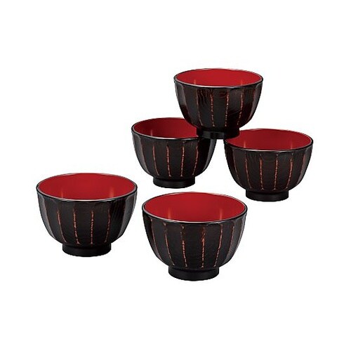 まるで漆塗りのような美しい塗りの汁椀5個入りです。大き目サイズなので具沢山の豚汁やかす汁などにもおすすめです。軽くて割れにくく、扱いやすい樹脂製の食器なので毎日手軽にお使いいただけます。 |