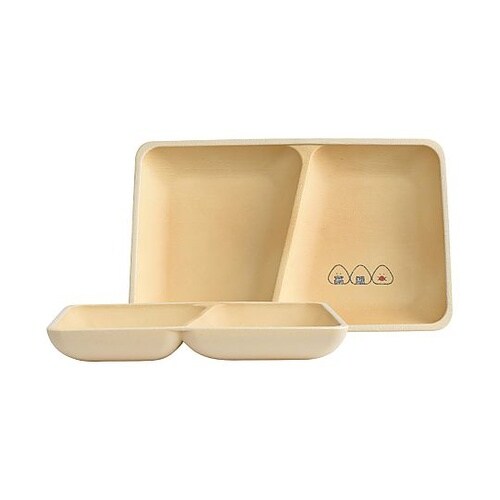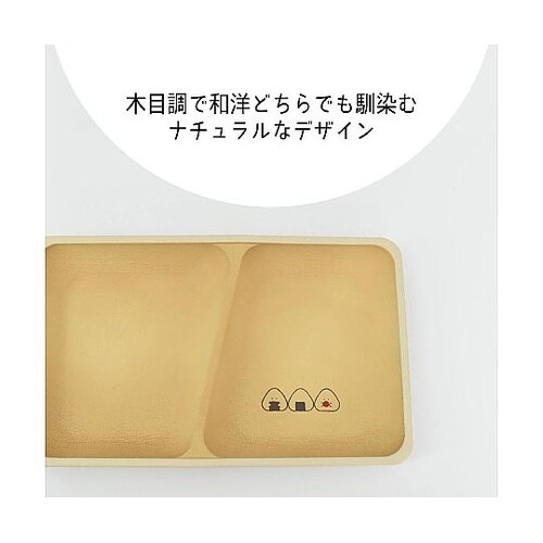 やさしい木目調デザインのの「ぎゅっとおにぎりさん」スクエアプレートです。仕切りがあるので、複数のおかずを盛り付けできます。電子レンジ・食洗機対応でお手入れ簡単です。 |