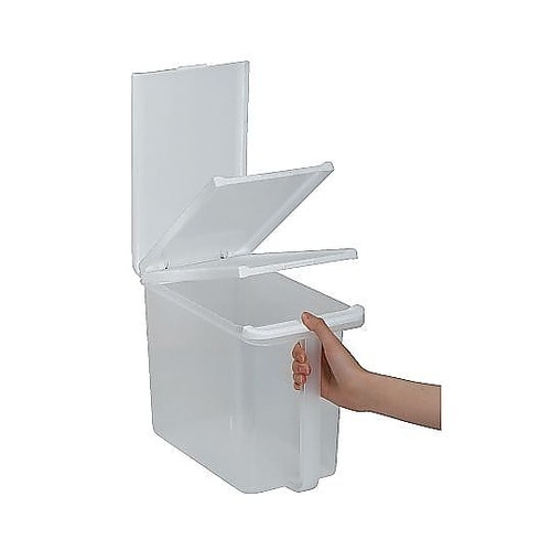吊り戸棚や食器棚の上などで使用できる吊り戸棚ストッカーです。フタ付きなので、虫の侵入やホコリを防ぐことができます。ワンプッシュでフタが開くので使い勝手も良いです。 |
