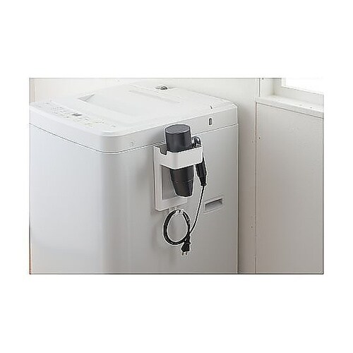 マグネットで簡単に取り付けができるフック付きドライヤーホルダーです。置き場に困るドライヤーを浮かせてスッキリ収納できます。本体には便利なミニフック2つが付いています。 |