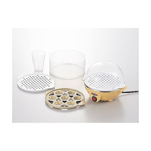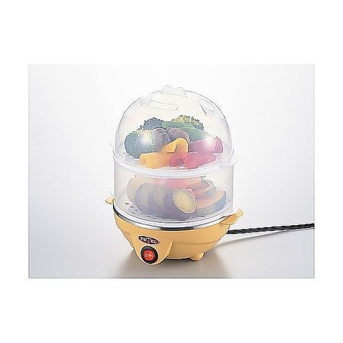 ゆで卵や蒸し料理が作れる、電気二段蒸し器です。火加減を気にせず、放っておくだけでできあがるお手軽さが魅力です。温かく食べたいメニューの時は、蒸し器ごと食卓に出すのもおすすめです。 |