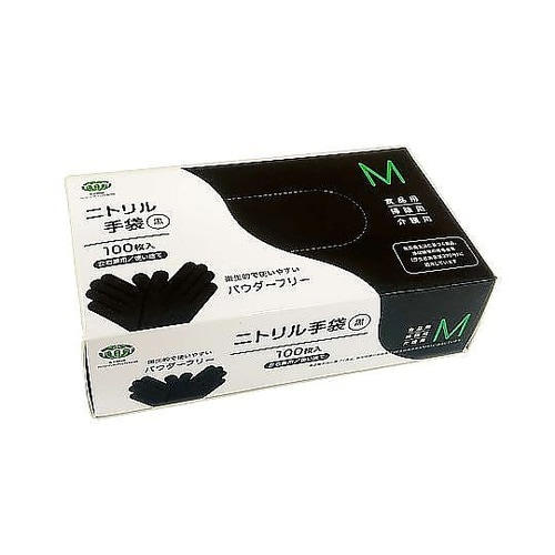 手袋 ニトリル手袋 100枚 S M L ブラック 左右兼用 パウダーフリー M