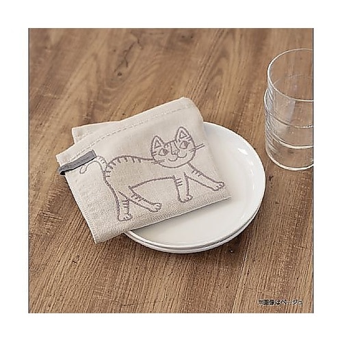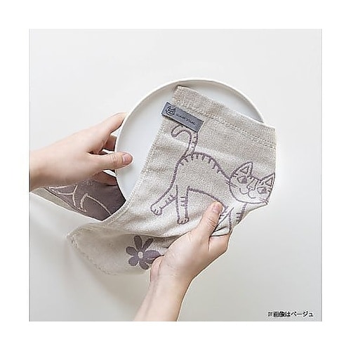 ねこ画家、おかべてつろう先生監修のふきんです。食卓やキッチンの台拭きとしてはもちろん、食器拭きにも使える万能ふきんです。Ag+(銀イオン)を繊維に練り込み済みで、洗っても抗菌効果が持続します。 |