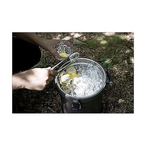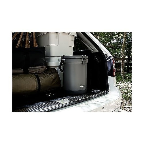 魔法瓶構造のクーラーバケットは一般的な製品の約4.5倍の保冷力を誇り、約7日間の氷をキープします。約9.5Lの大容量で、1ー2人分の食材や飲み物をしっかり冷やせます。 |