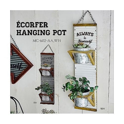 アンティーク風のお庭を演出する「ハンキングポット」です。ハンギングアレンジを手軽に楽しる植木鉢2個付きです。「ALWAYS be yourself」ロゴ入りです。 |
